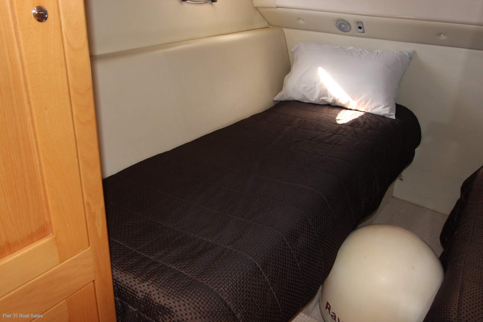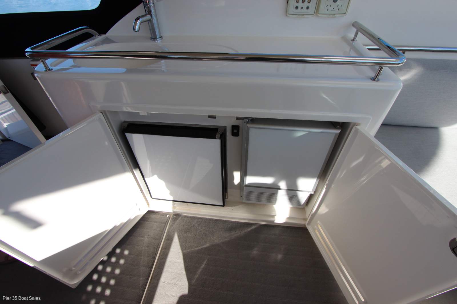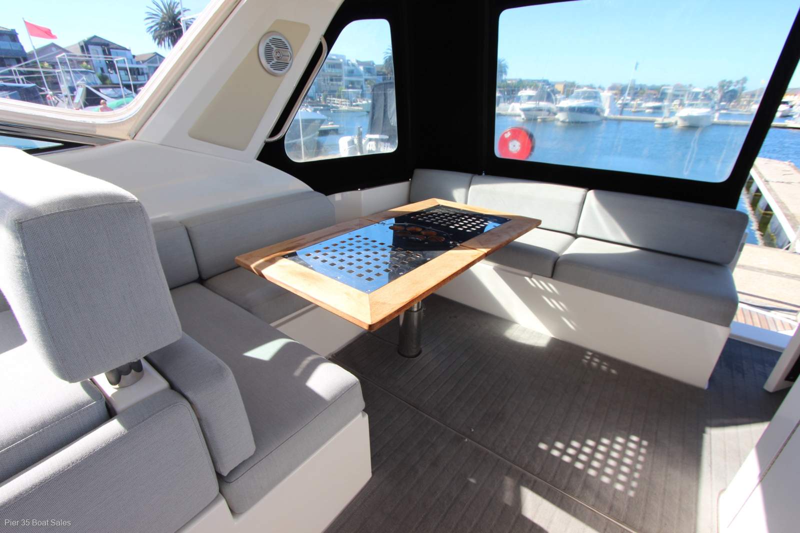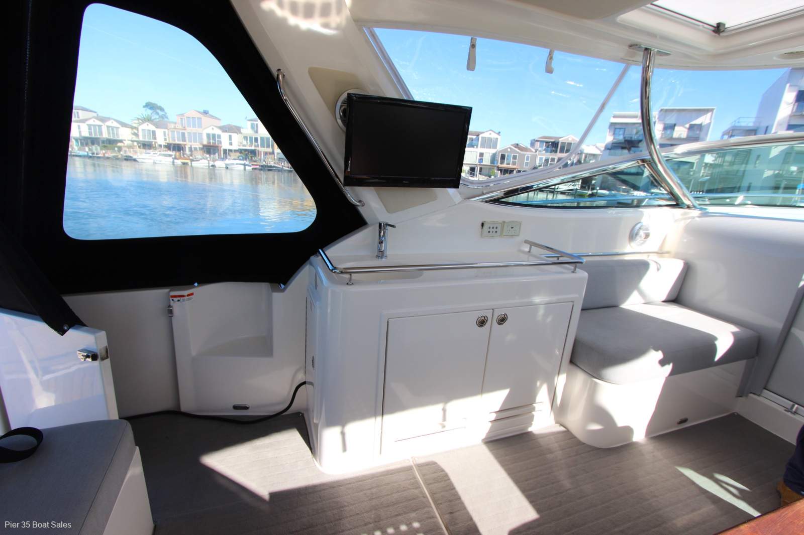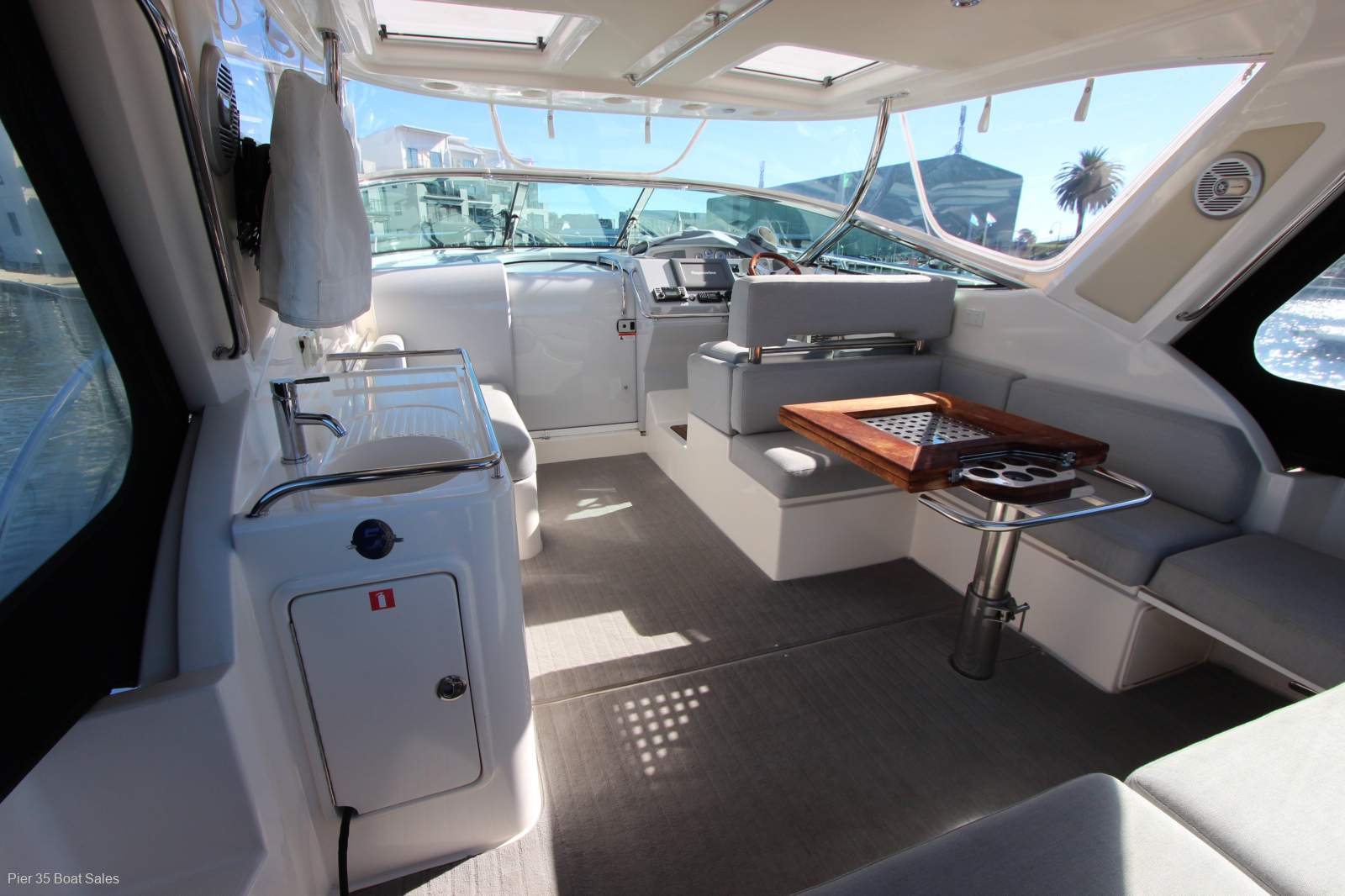 The M400 is as much for those who appreciate comfort and love to entertain as it is for thrill seekers. Reverse cycle AC. Ice maker and loads of refrigeration help make the large entertaining area work well. With new covers and cockpit upholstery during it current ownership its a pleasure to step aboard. Accommodating five adults in two separate cabins this cruiser is an ideal weekend escape package. Recently serviced hull and engines its ready to enjoy. Moored at Paterson Lakes inspection is by appointment and it will not disappoint as this is a extremely well kept cruiser we can arrange transport to where you need.