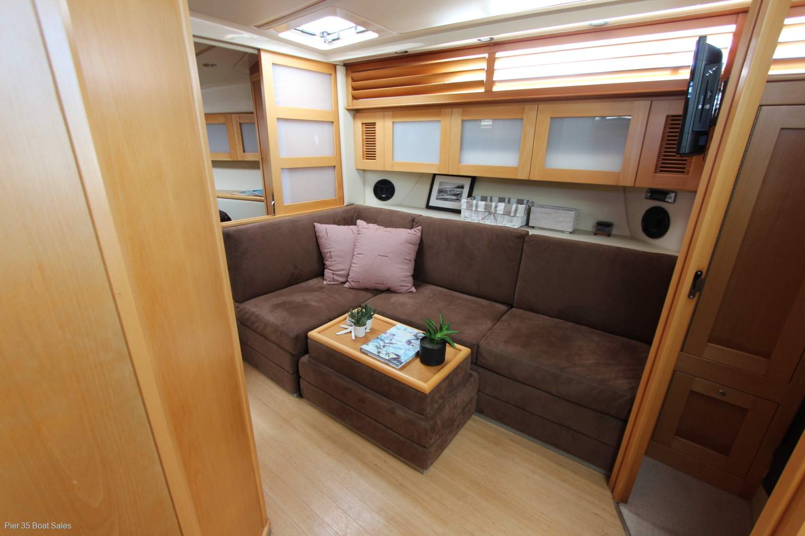 Riviera M400 Powered by freshly serviced Twin 496 MerCruisers with digital throttle and shift.